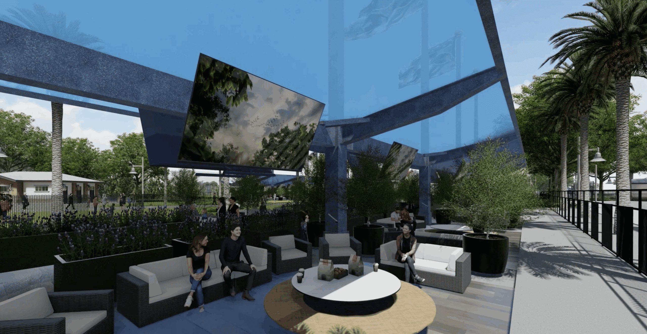 - Reserved shaded seating or party plaza